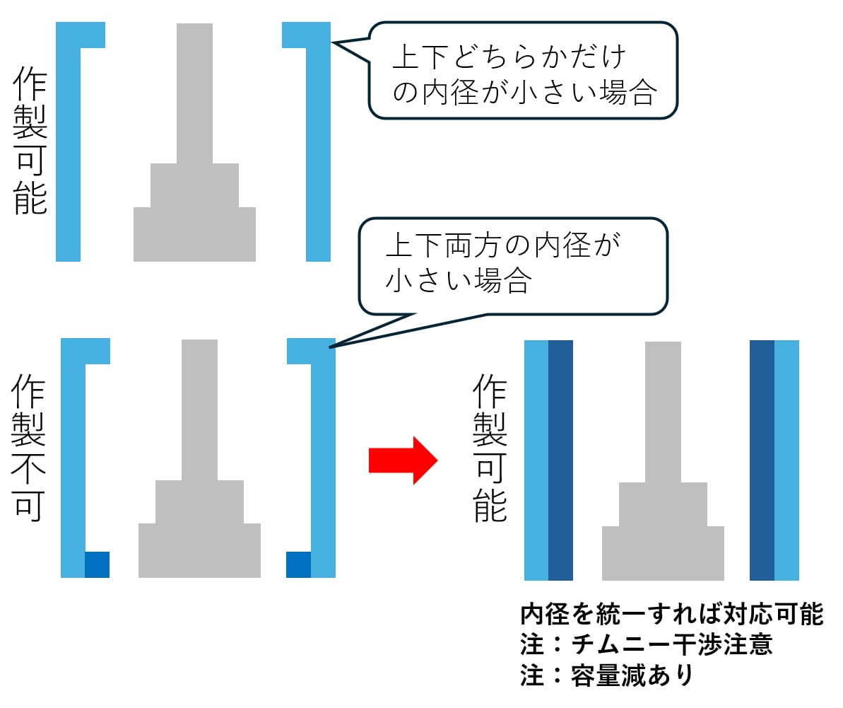 タンクの上下で内径が違う場合は作製可能です。